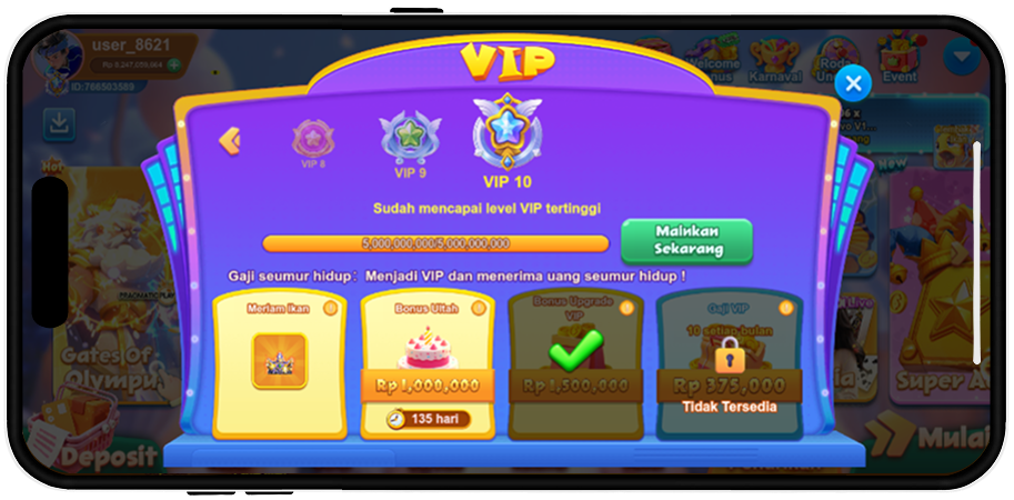 💥Note: If you finish the first VIP upgrade ( from VIP0 TO VIP1 ),then you can also get Rp10,000 extra reward !